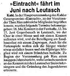 Kulturelle Zeugnisse des Männergesangvereins "Eintracht" 1873 e.V. Kahl