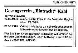 Kulturelle Zeugnisse des Männergesangvereins "Eintracht" 1873 e.V. Kahl